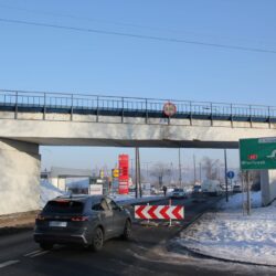 Z wiaduktu nad ul. Kolejową odpadł fragment tynku. Pas jezdni w kierunku centrum zamknięty