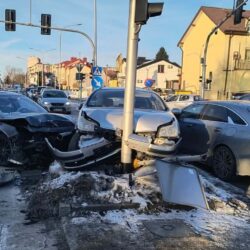 44-letni pieszy wtargnął pod nieoznakowany radiowóz. Rozbite trzy auta, poszkodowany policjant