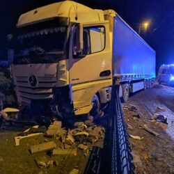 Kronika policyjna. 1. Ciężarówka uderzyła w znak drogowy, rozbiła ogrodzenie. 2. Samochód do przewozu mleka w rowie