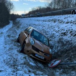 Wciąż ślisko i niebezpiecznie na podpłockich drogach. W Zdworzu dachował hyundai