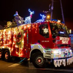 Ci to mają fantazję… Świętego Mikołaja w saniach zapakowali na dach wozu strażackiego i… [WIDEO]