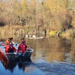 100P!łock. Strażacy ochotnicy z Trzepowa ratowali pelikany z zamarzającego stawu
