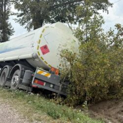 Cysterna w rowie. Prawdopodobnie wystrzeliła opona