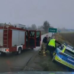 Policyjny radiowóz nie zmieścił się w zakręcie, wpadł do przydrożnego rowu