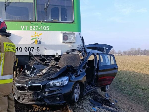 Śmiertelny wypadek w Ogorzelicach. BMW wjechało pod szynobus Kolei Mazowieckich. Nie żyje pasażerka z auta, kierowca ranny