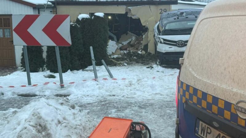 Chwile grozy na skrzyżowaniu Maszewskiej i Długiej. Kierowca stracił panowanie nad autem. Toyota wjechała w dom