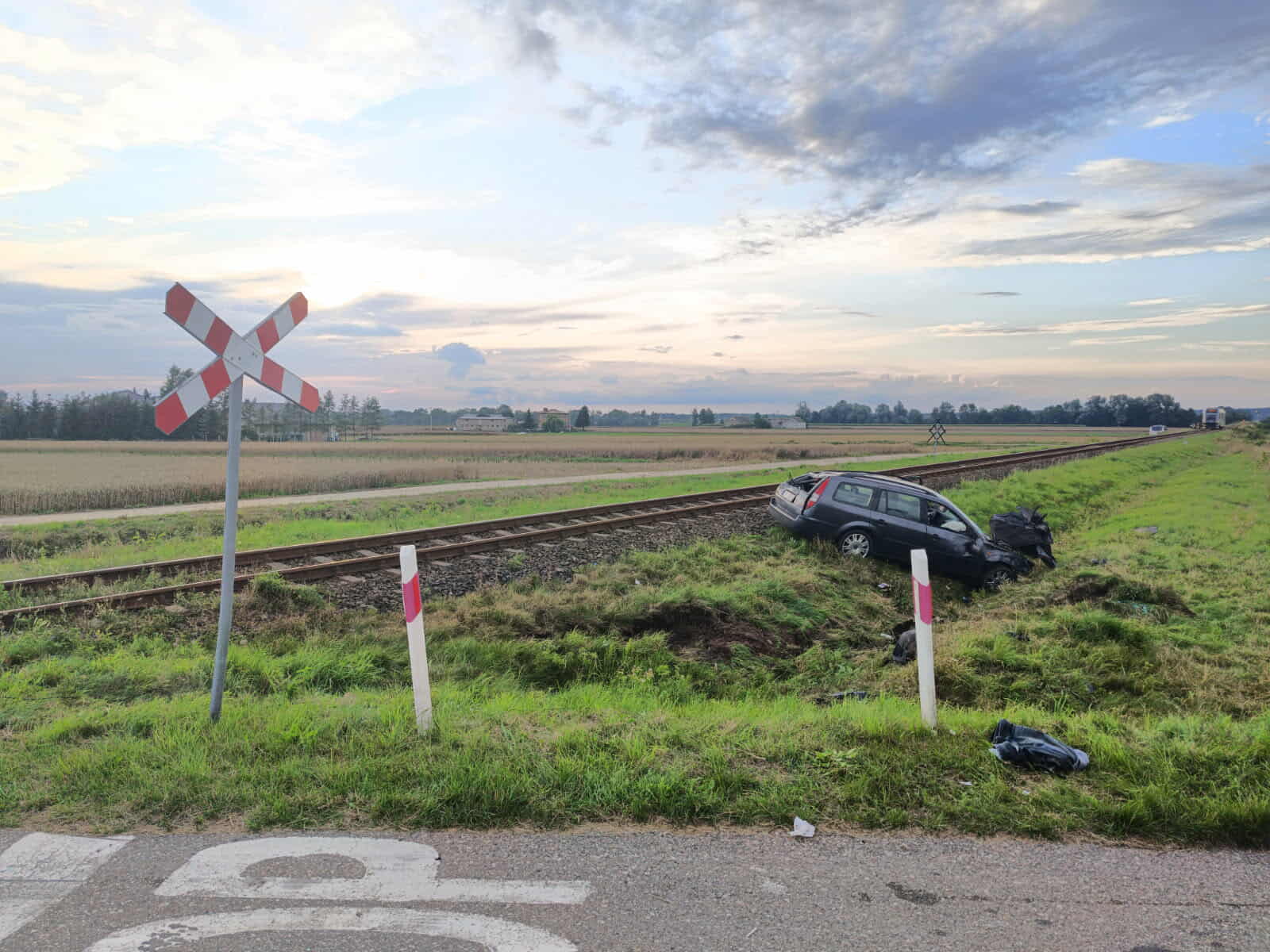 Gmina Stara Biała. Na niestrzeżonym przejeździe kolejowym ford wjechał pod pociąg. Kierowca w szpitalu…