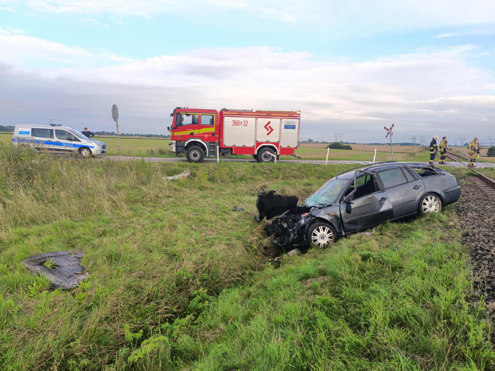 Do wypadku doszło po godz. 18 w Ogorzelicach niedaleko Proboszczewic. Kiedy strażacy dotarli na miejsce zdarzenia, 47 letni kierowca, mieszkaniec Płocka, był pod autem. Przytomnego mężczyznę ratownicy wydobyli przy użyciu sprzętu pneumatycznego. Jak informuje podkom. Monika Jakubowska z płockiej policji, został przewieziony do szpitala w stanie zagrażającym życiu. Ani pasażerowie, ani maszynista nie doznali poważnych obrażeń.