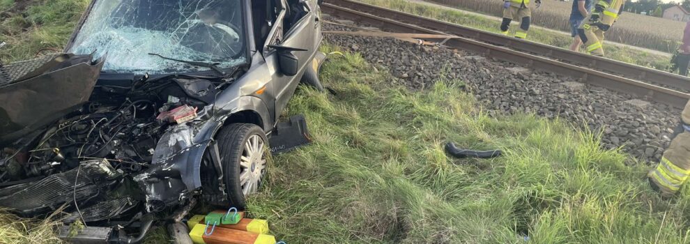 Gmina Stara Biała. Na niestrzeżonym przejeździe kolejowym ford wjechał pod pociąg. Kierowca w szpitalu…