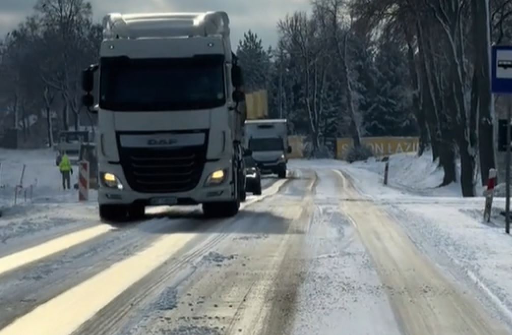 Lodowisko w Srebrnej. Ciężarówki przegrały z podjazdem. Wygląda to źle – zobaczcie na filmie. A w Rogozinie – zderzenie