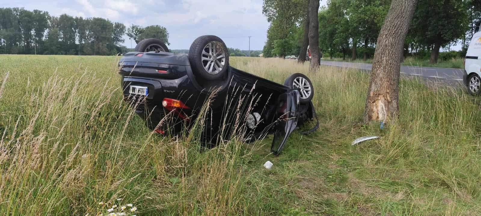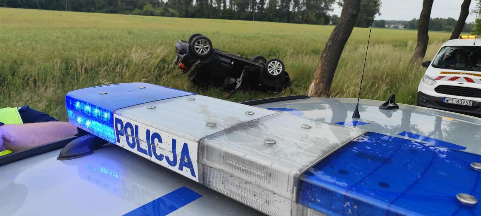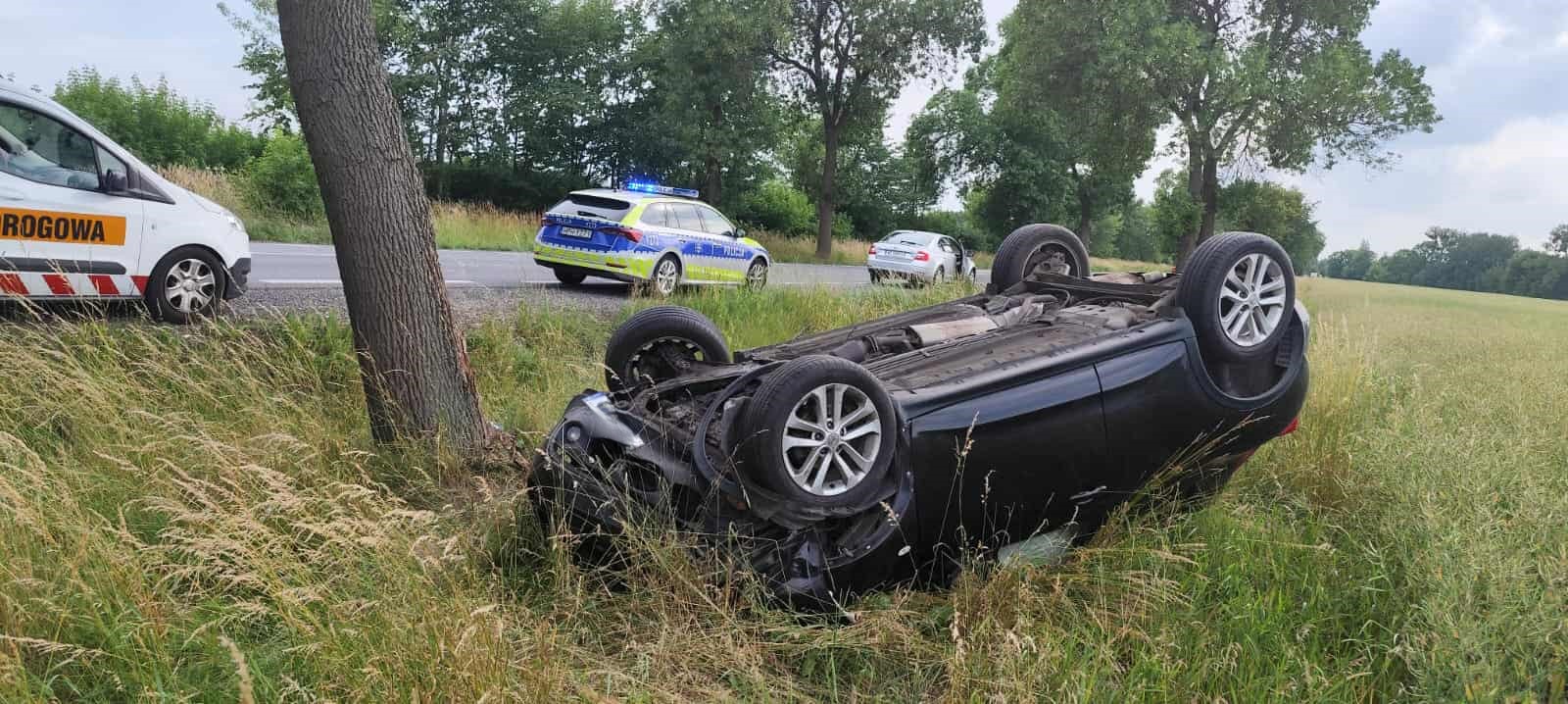 Przed godz. 15 na drodze krajowej nr 60 w Łącku 77-letni kierujący nissanem zjechał na przeciwległy pas ruchu, następnie do rowu, po czym uderzył w drzewo i dachował. Mężczyzna został przewieziony do szpitala.