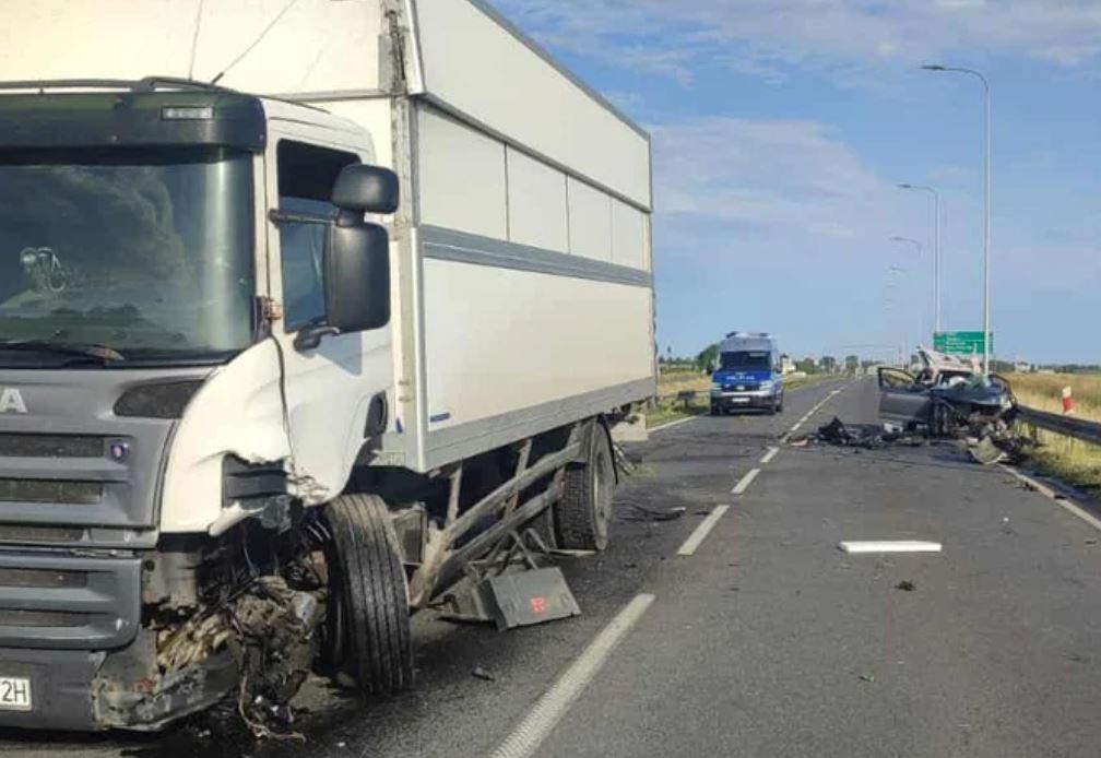 Obwodnica zablokowana. Samochód osobowy zderzył się z ciężarówką