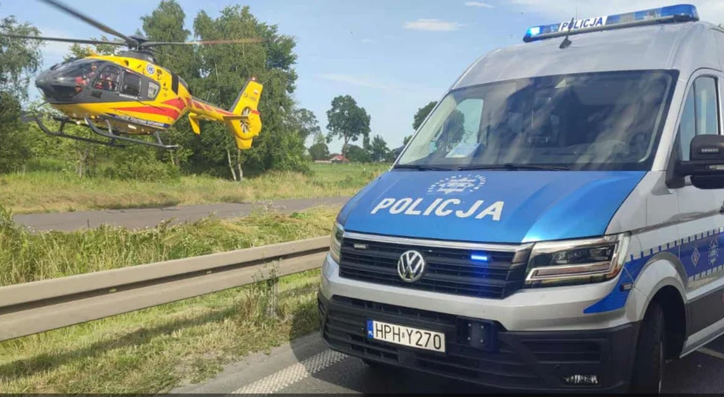 Na miejscu są dwa zastępy Państwowej straży pożarnej, karetka, policja, wylądował śmigłowiec Lotniczego Pogotowia Ratunkowego.