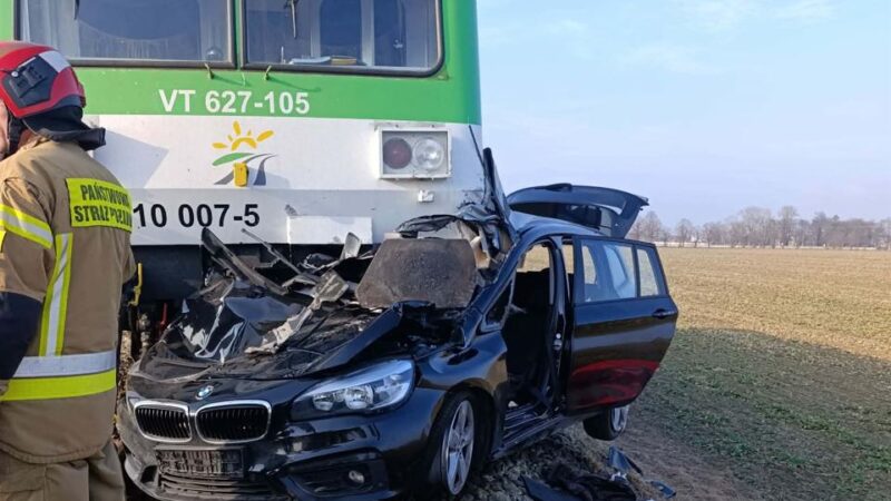Śmiertelny wypadek w Ogorzelicach. BMW wjechało pod szynobus Kolei Mazowieckich. Nie żyje pasażerka z auta, kierowca ranny