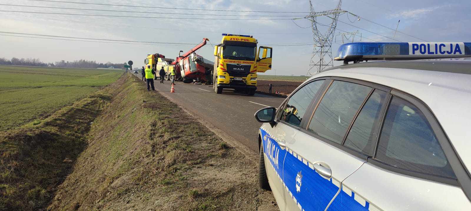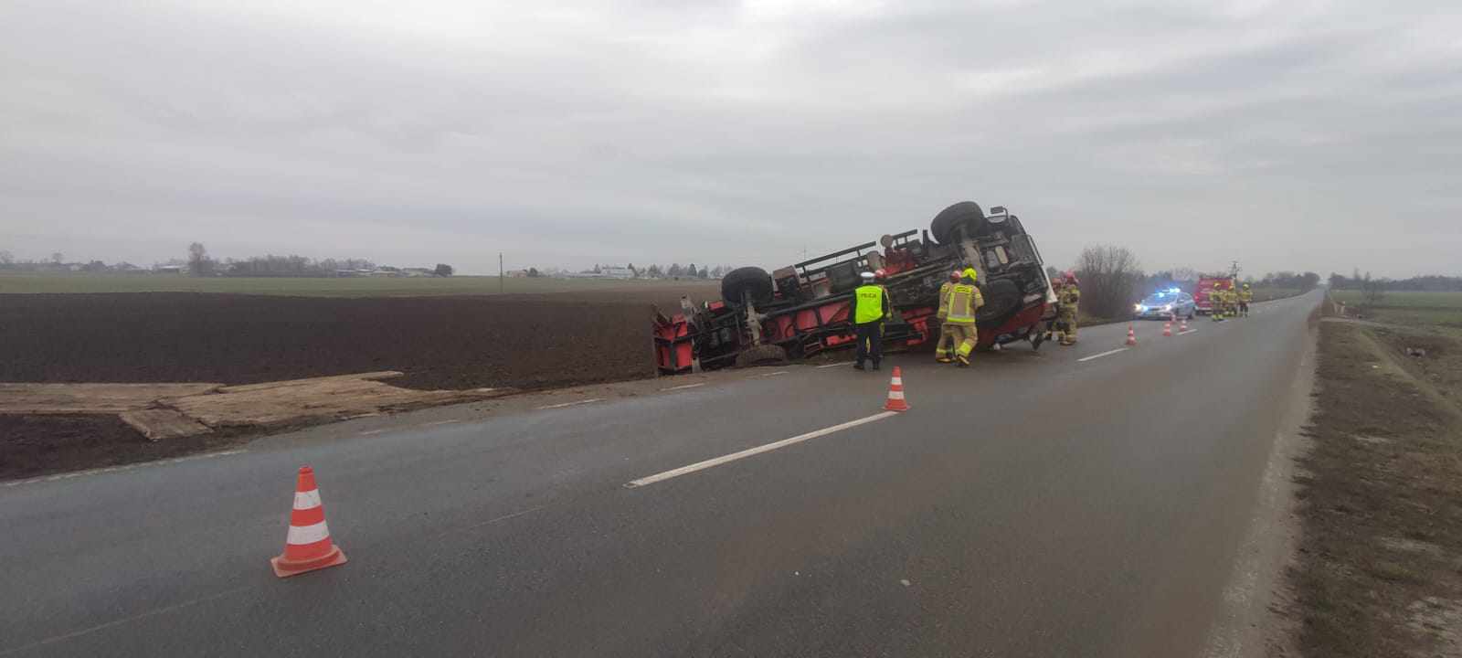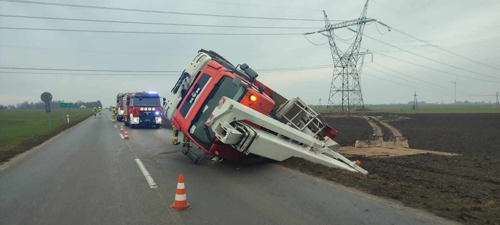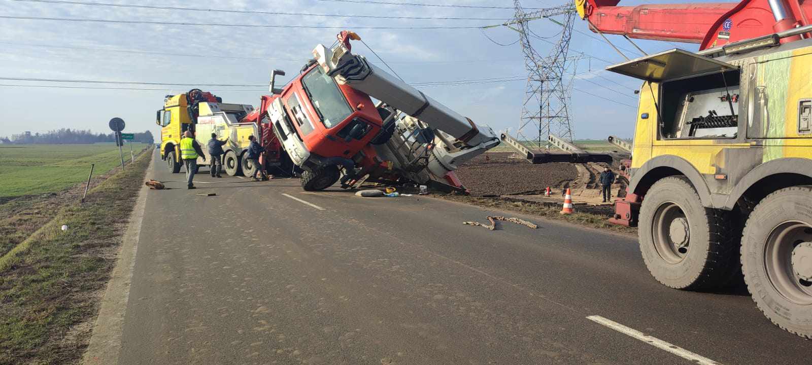 Trzeba było podnieść dźwig, przez pewien czas droga w kierunku Staroźreb była całkowicie zablokowana.