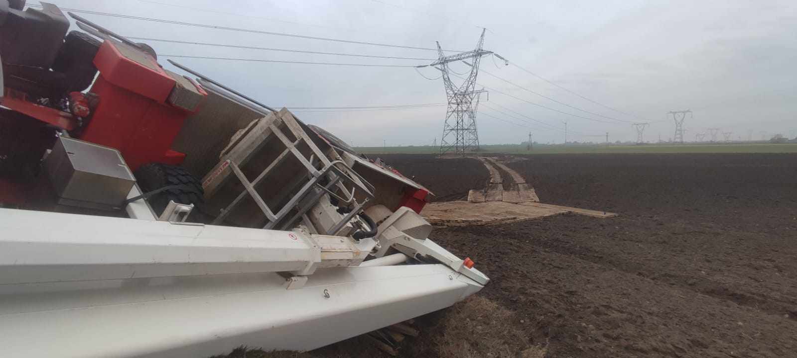 Pod Płockiem ziemia zapadła się pod dźwigiem. Maszyna przewróciła się