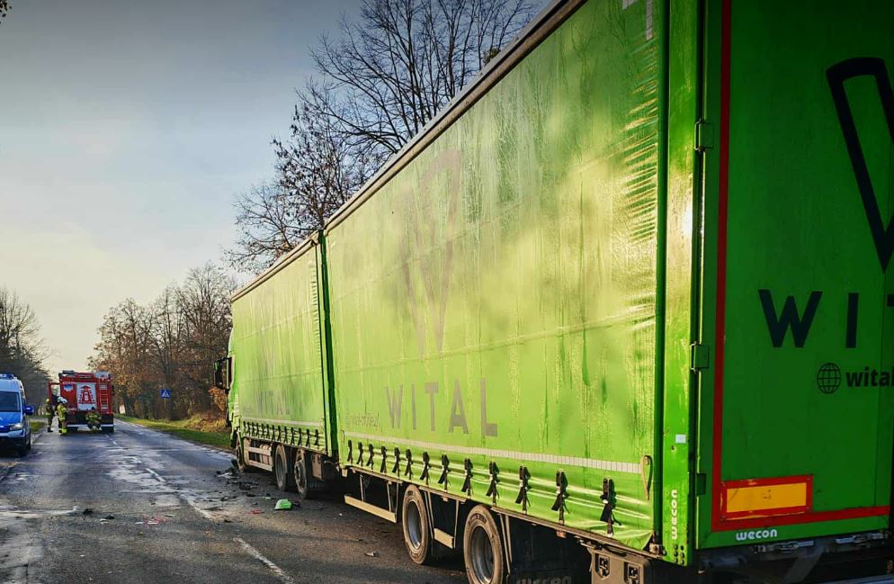 Jedna osoba ranna po zderzeniu ciężarówki z autem osobowym