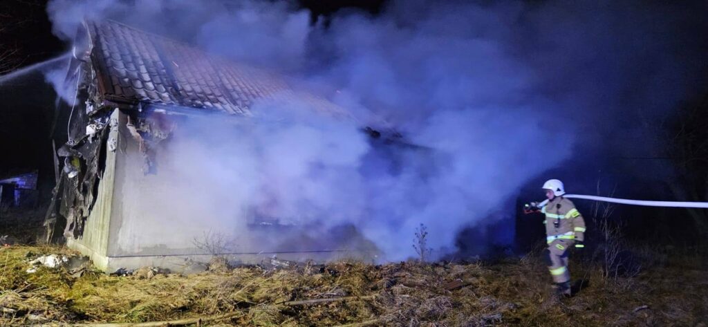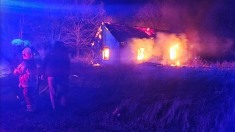 Pożar pustostanu w gminie Staroźreby. Cztery zastępy strażaków w akcji