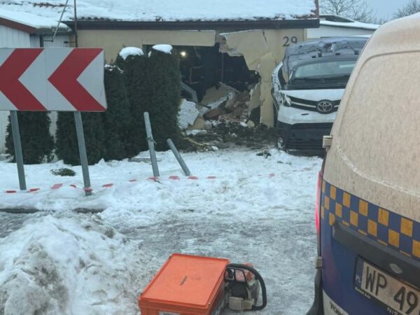 Chwile grozy na skrzyżowaniu Maszewskiej i Długiej. Kierowca stracił panowanie nad autem. Toyota wjechała w dom
