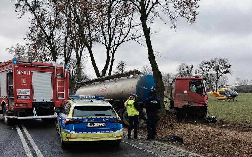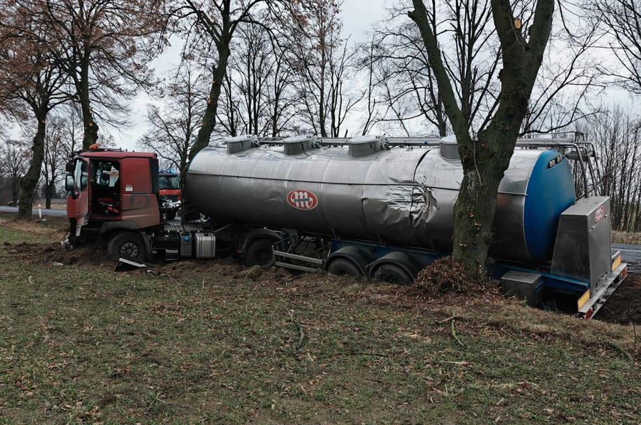 Droga jest całkowicie zablokowana. – Utrudnienia mogą potrwać do godz. 16, ponieważ trzeba przepompować mleko znajdujące się w cysternie – zapowiada Wojciech Pietrzak.