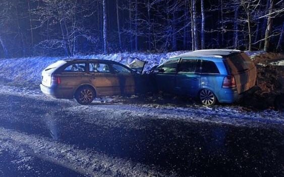 Wypadek. Po czołowym zderzeniu dwóch aut siedem osób, w tym czworo dzieci, przewiezionych do szpitala