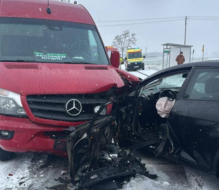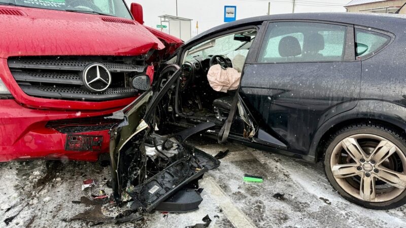 Wypadek. W Ciućkowie seat zderzył się z dostawczym mercedesem