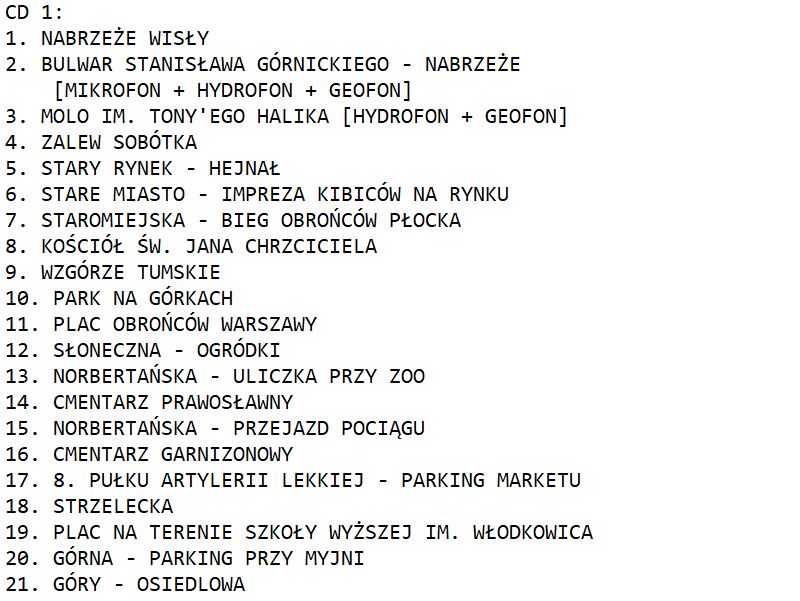 W 2025 roku mija zatem pięć lat od ukazania się tej pierwszej mapy dźwiękowej Płocka, na którą złożyło się 40 nagrań terenowych. Druga odsłona projektu przedstawia Płock w 43 nagraniach, w wielu przypadkach o zupełnie innym charakterze. Gwar, wydarzenia masowe, intensywny i wszechobecny ruch kołowy i kolejowy…