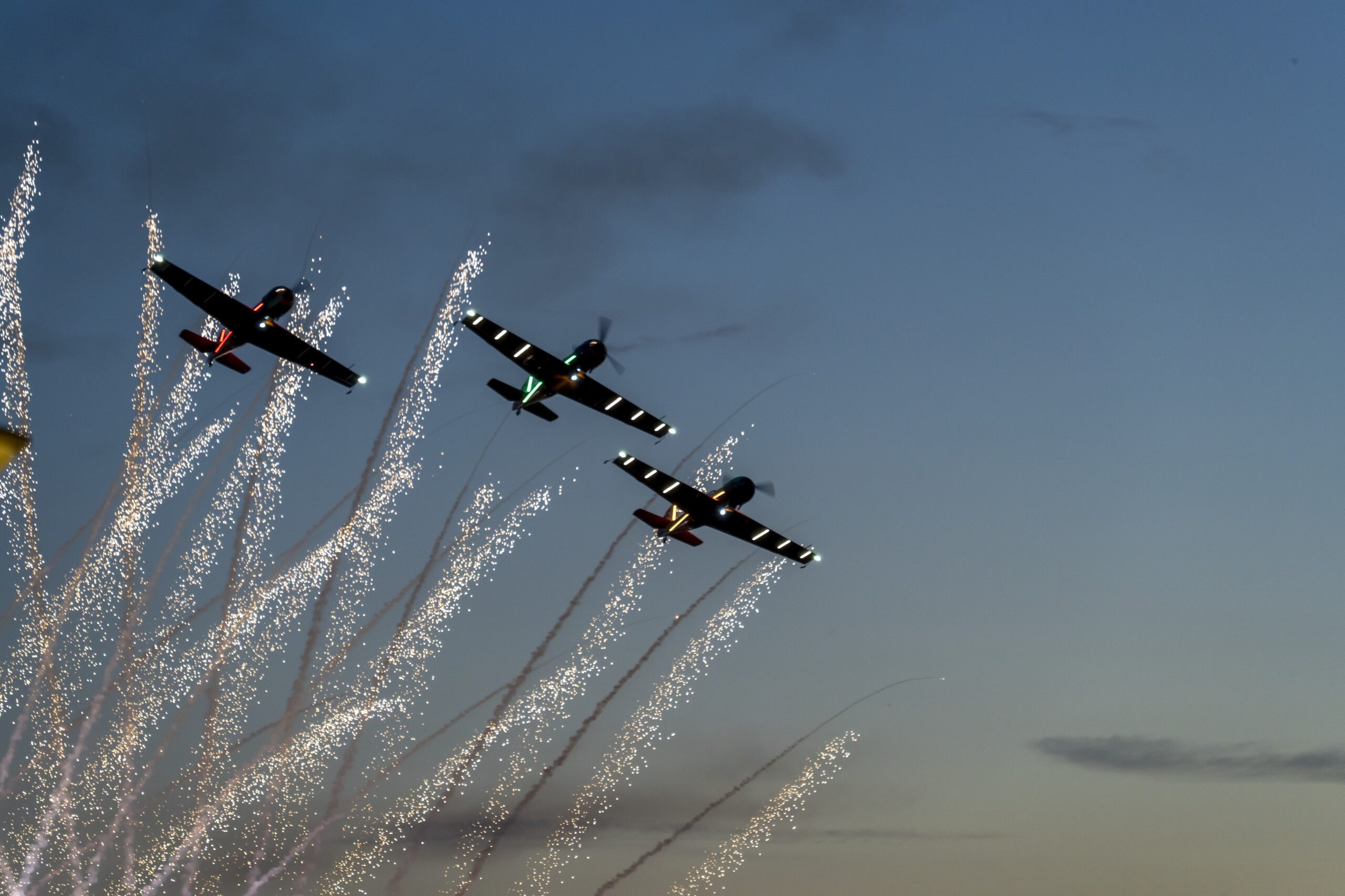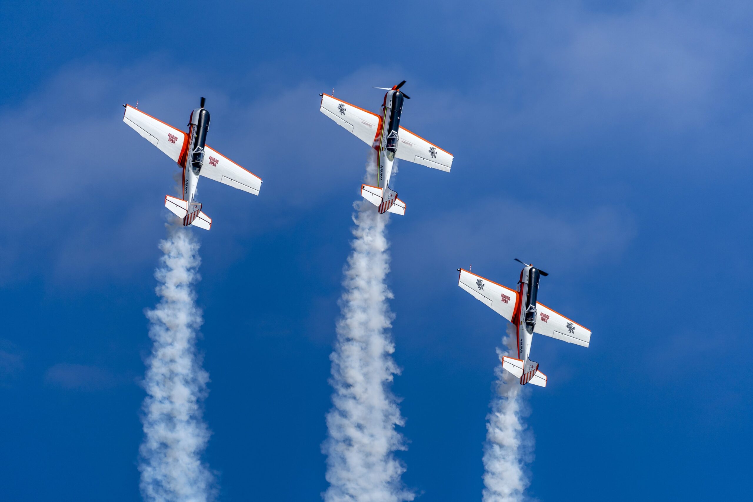 Pilotów z Litwy i ich maszyny można podziwiać na całym świecie, także podczas pokazów lotniczych w Polsce. Niedawno dołączyli do swojego repertuaru pokazy o zmierzchu, wzbogacone o elementy wizualne. Samoloty mają barwne oświetlenie, są efekty pirotechniczne, smugi dymu, fajerwerki odpalane z ziemi i z pokładu podniebnych maszyn.