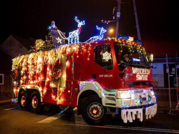Ci to mają fantazję… Świętego Mikołaja w saniach zapakowali na dach wozu strażackiego i… [WIDEO]