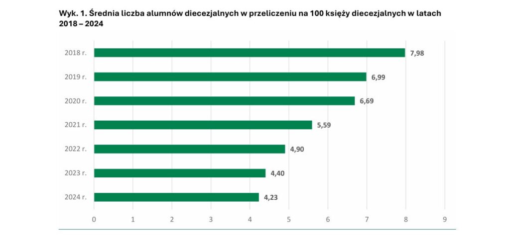 O połowę w latach 2018-2024 zmniejszyła się w kraju liczba kleryków…