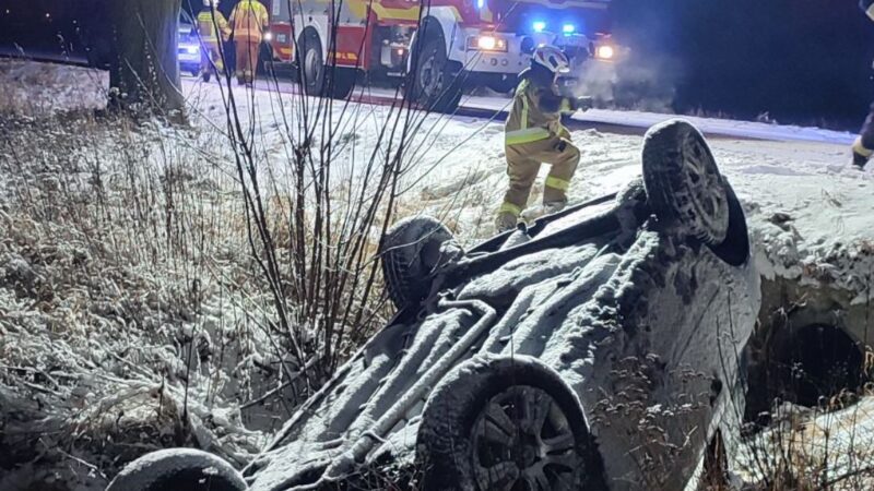 Niebezpiecznie na zaśnieżonych drogach. Dachowanie w Bielsku