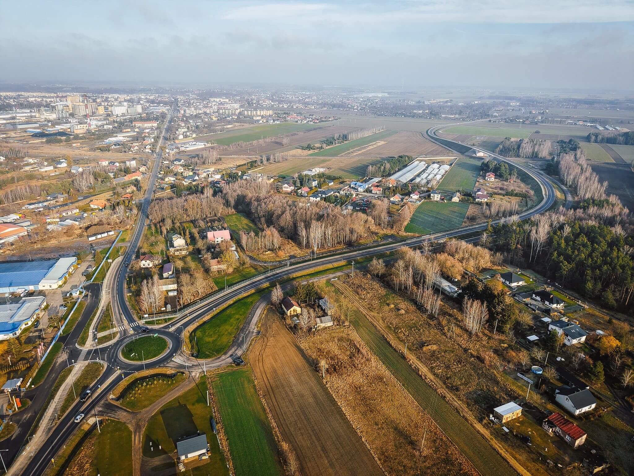 Na zdj. powyżej: obwodnica Sierpca z lotu ptaka – z lewej rondo w Gorzewie, z prawej – na DK 10; fot. Facebook / Bogdan Banaszczak
