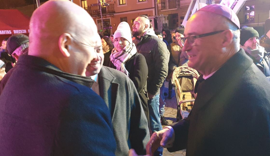 Zabrzmiały pierwsze świąteczne dźwięki w wykonaniu zespołu Ogniści Harnasie, a kto tylko chciał, mógł podzielić się opłatkiem z prezydentem Andrzejem Nowakowskim, rzymskokatolickim biskupem płockim Szymonem Stułkowskim i biskupem naczelnym Kościoła Starokatolickiego Mariawitów Janem Marią Opalą.