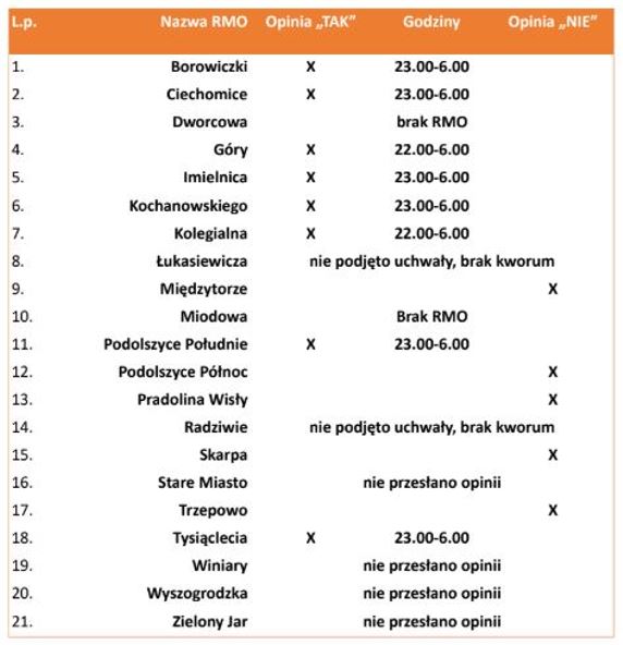 O opinię w sprawie zakazu nocnej sprzedaży alkoholu ratusz zwrócił się też do 21 rad mieszkańców osiedli. Jednoznaczne stanowisko zajęło 13 z nich. Osiem rad poparło wprowadzenie ograniczeń, pięć było przeciwnych: