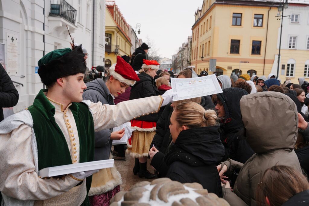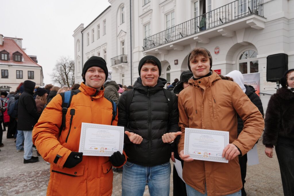 Wyjątkowo szybko maturzyści ustawili się do wspólnego zdjęcia, a na koniec dla wszystkich mieliśmy drobny prezent – certyfikat uczestnictwa w 21. Płockim Polonezie Maturzystów.