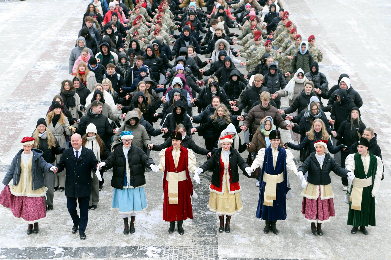 Najpierw jednak mikrofon wziął do ręki choreograf „Dzieci Płocka” Piotr Amrozy. Ustawił maturzystów po dwóch stronach ratusza – pod farą i na ul. Zduńskiej, odczekał aż z wieży magistratu zabrzmią dźwięki „Hejnału płockiego” i dopiero wtedy dał sygnał: – Zaczynamy.