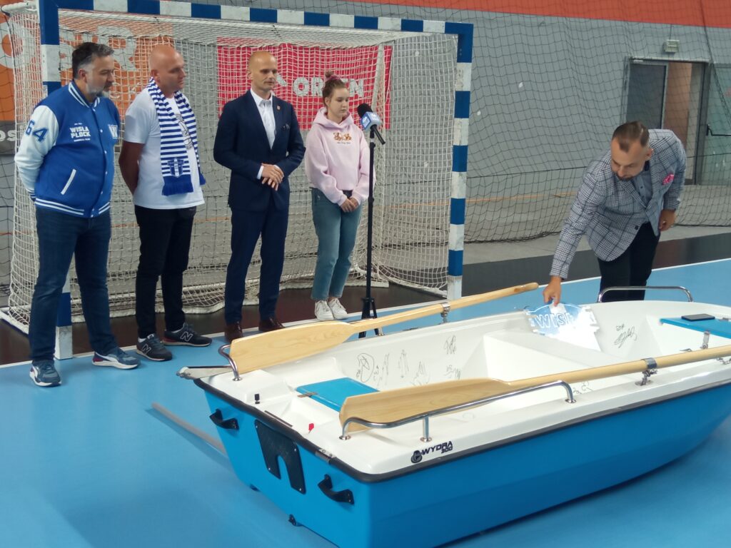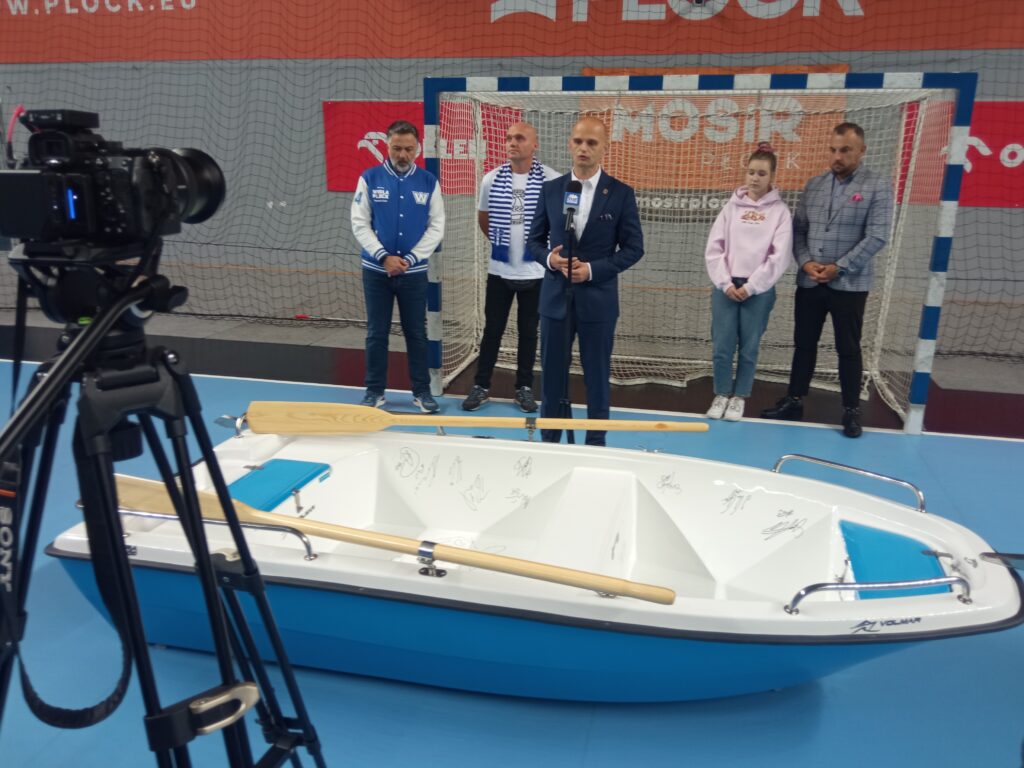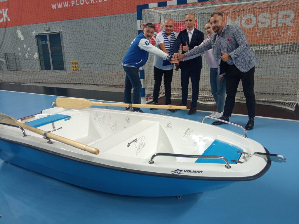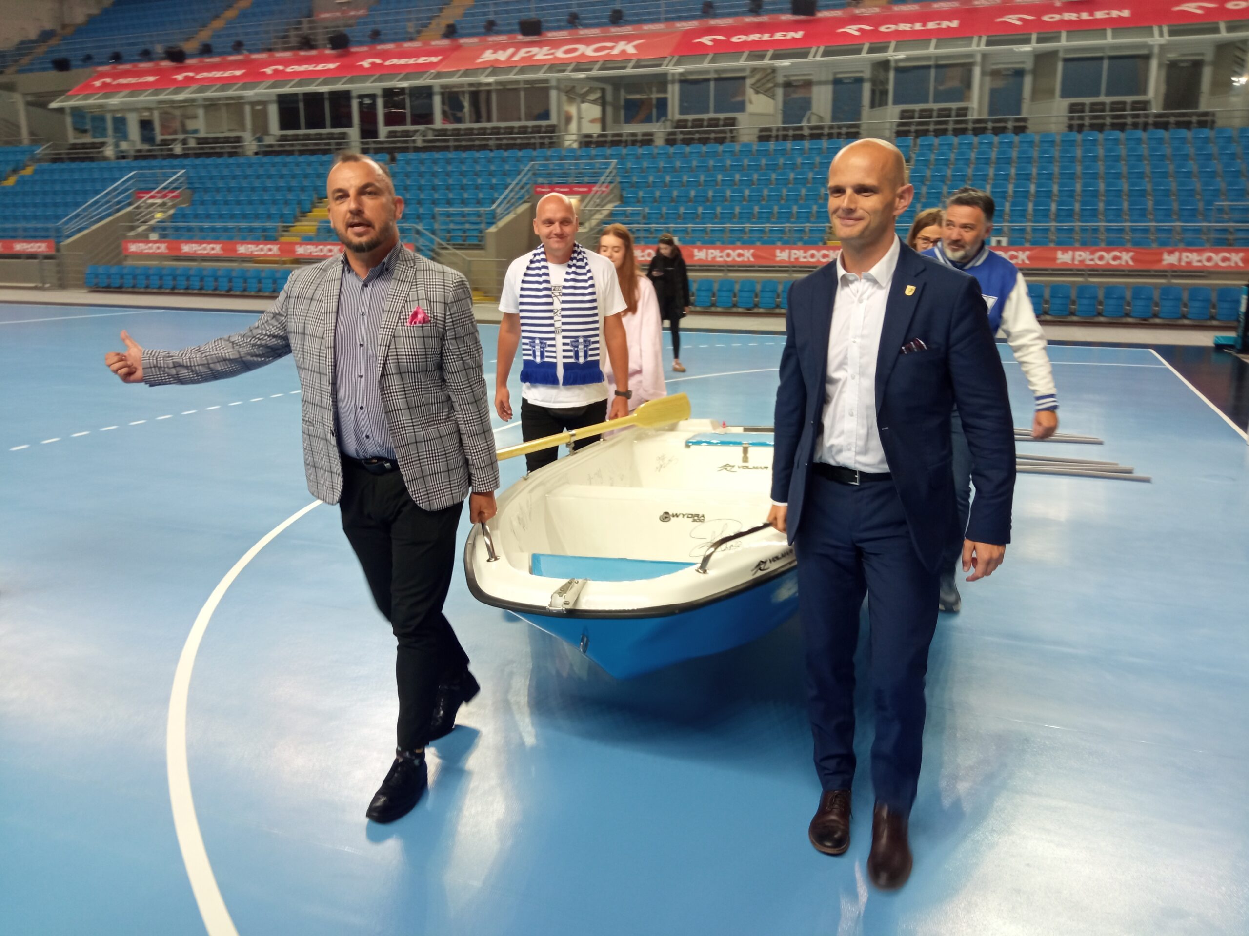 – Potem okazało się jeszcze, że w naszym otoczeniu są ludzie, którzy chcą licytować tego typu przedmioty – dodawał Tomasz Kominek. Informował, że łódkę wylicytował Piotr Gryszpanowicz, społecznik, autor książek o Płocku, członek zarządu Orlen Projektu. W Orlen Arenie reprezentowała go córka Klaudia.