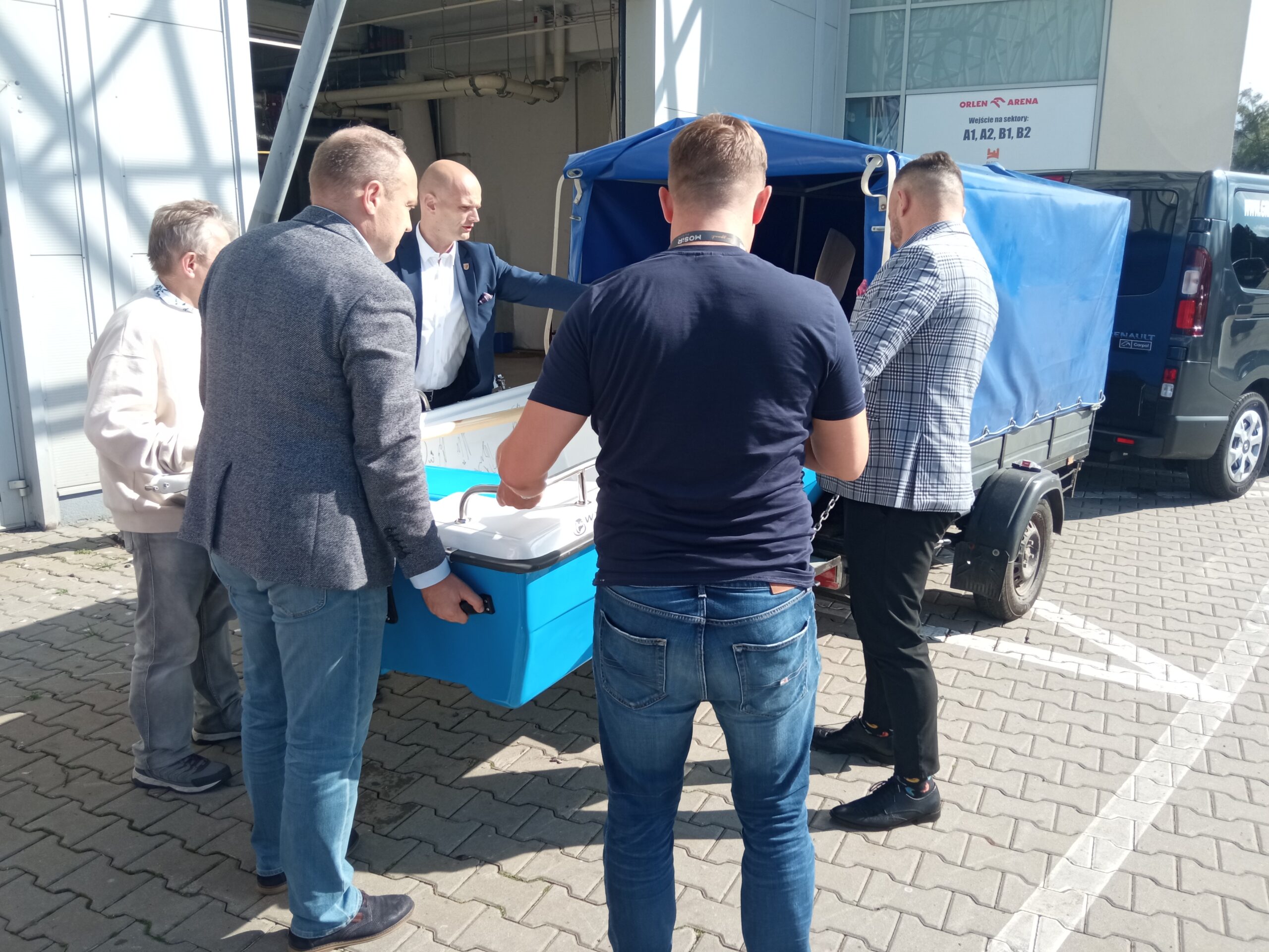 – Cała akcja włączenia samorządowców, czyli nas, do akcji charytatywnych, których celem jest pomoc Alankowi to zasługa prezesa SPR Wisła Artura Stanowskiego, bo to on zmotywował nas do tego, żeby chciało się nam chcieć po raz kolejny pomagać drugiej osobie – mówił w Orlen Arenie Tomasz Kominek, dyrektor płockiej delegatury urzędu marszałkowskiego. – Okazało się, że gdy ze starostą Sylwestrem Ziemkiewiczem włączyliśmy się po raz pierwszy w tę pomoc, to mnóstwo ludzi odezwało się z różnymi pomysłami, gadżetami i tak trafiła do nas ta wspaniała łódka Wydra 300, która produkowana jest w powiecie płockim, ale przez mieszkańca Radziwia.
