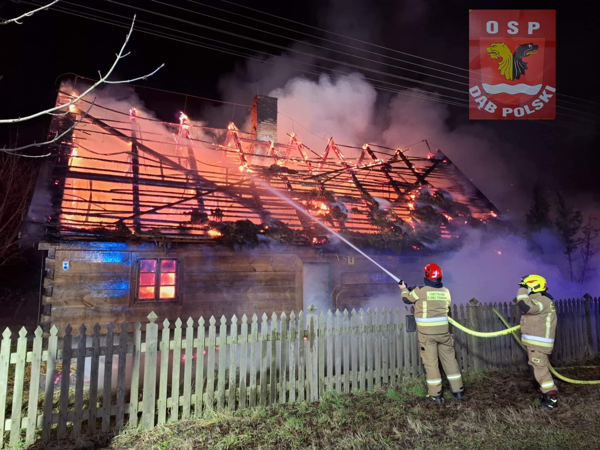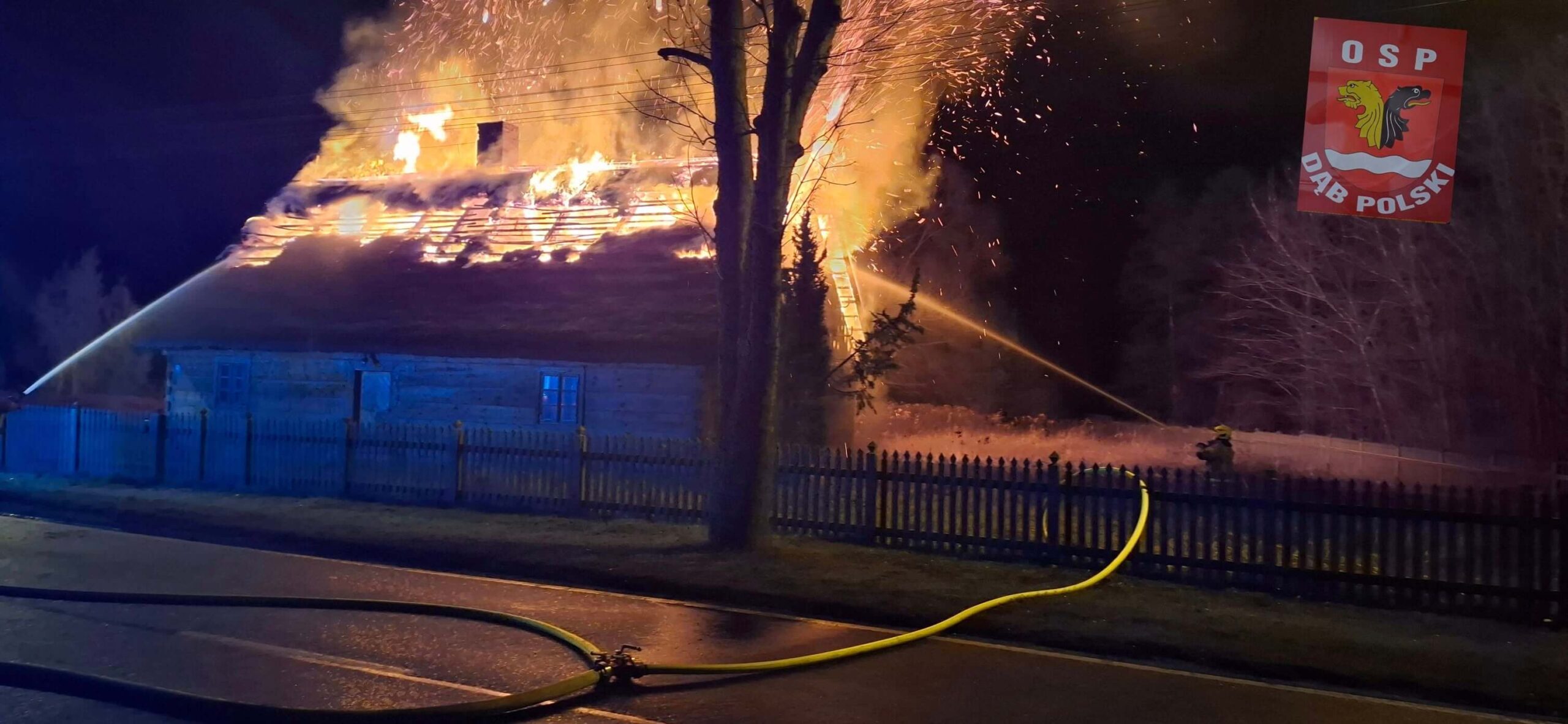 Spłonęła zabytkowa drewniana chata z końca XIX w. Niewykluczone że dach ze strzechy zapalił się od fajerwerków [WIDEO]