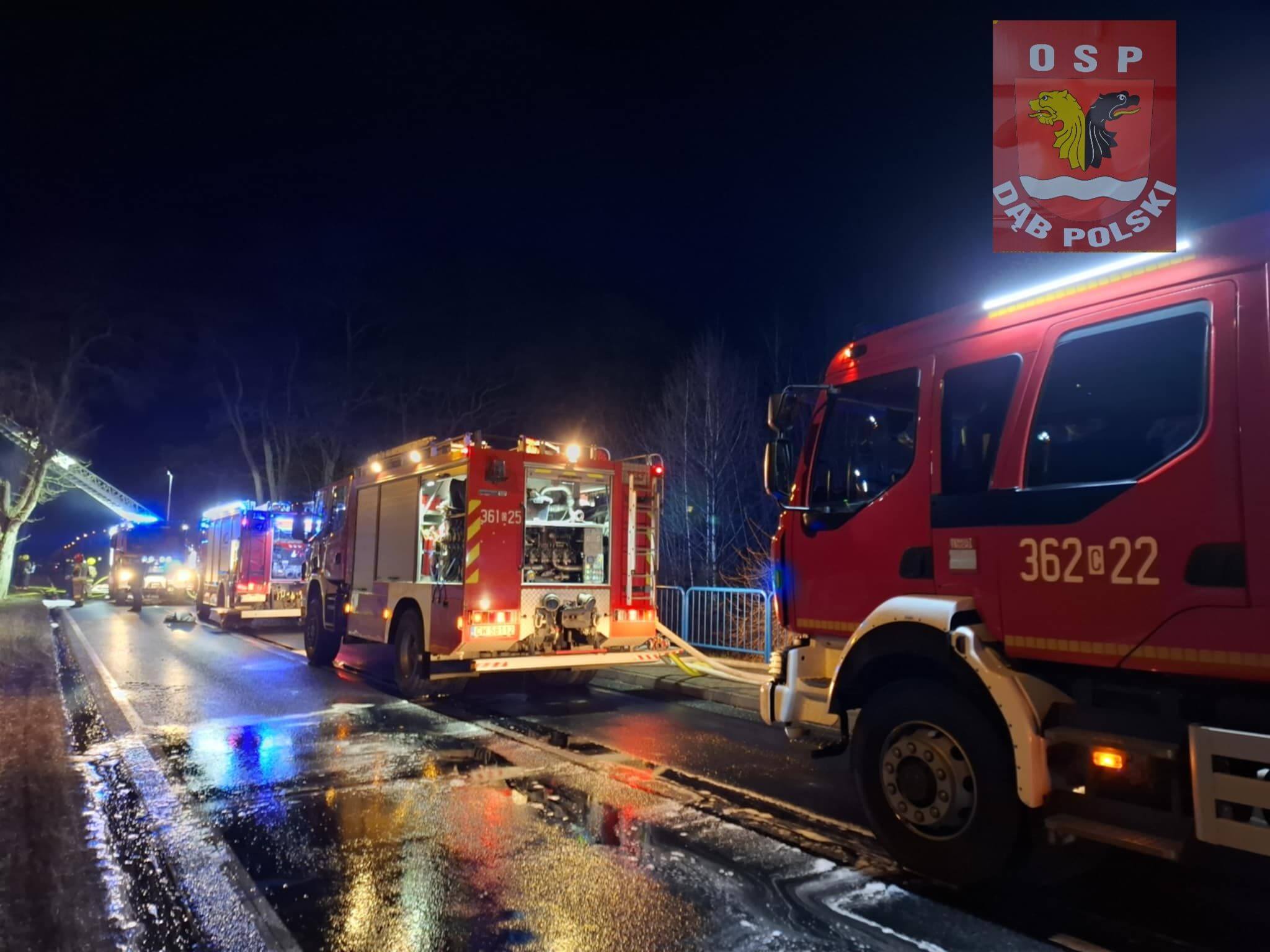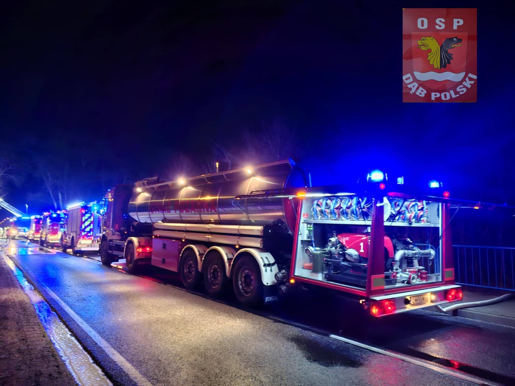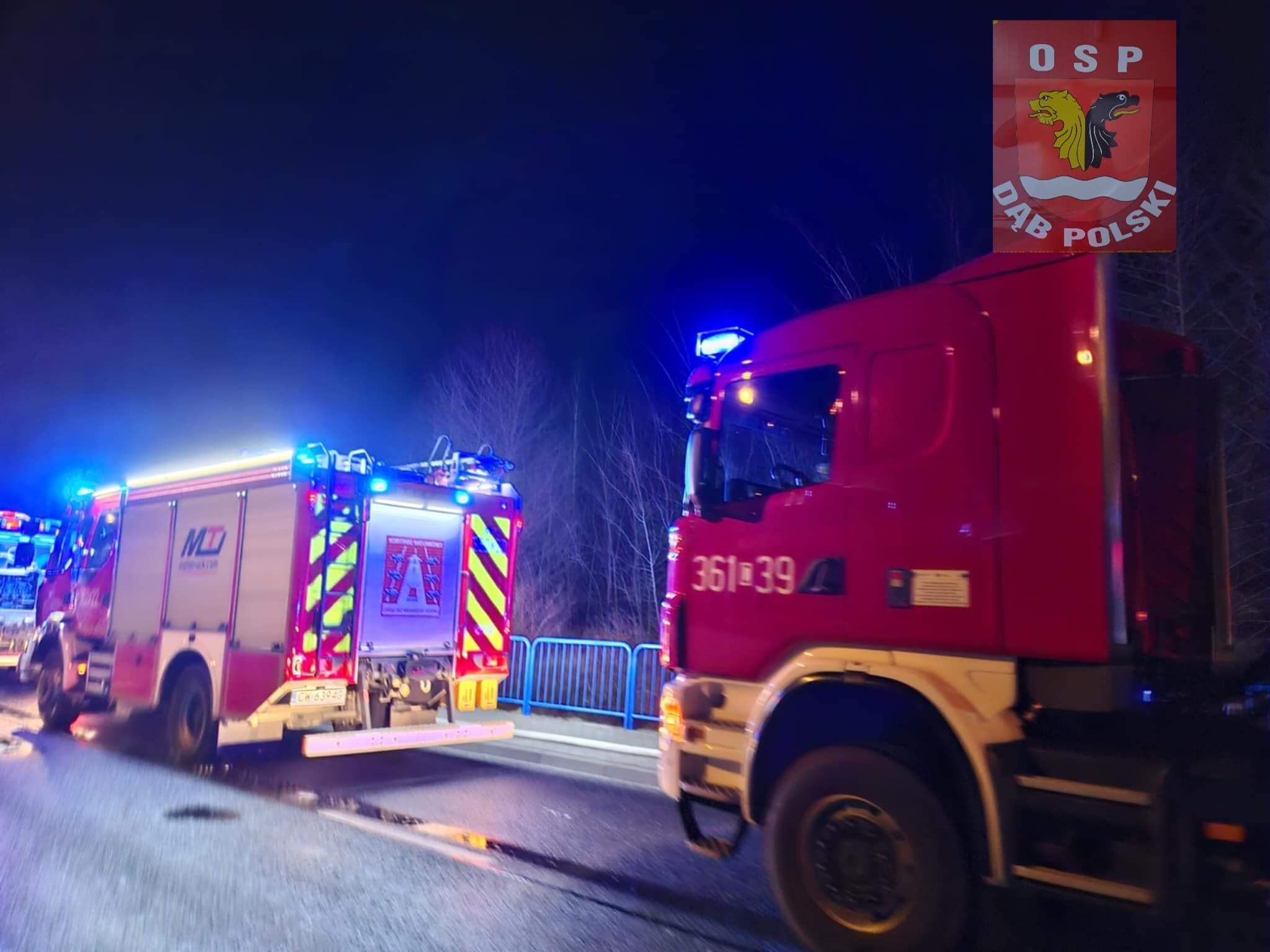 Do strażaków z OSP Dąb Polski wezwanie do akcji przyszło kwadrans po północy.