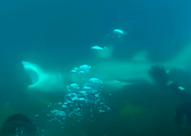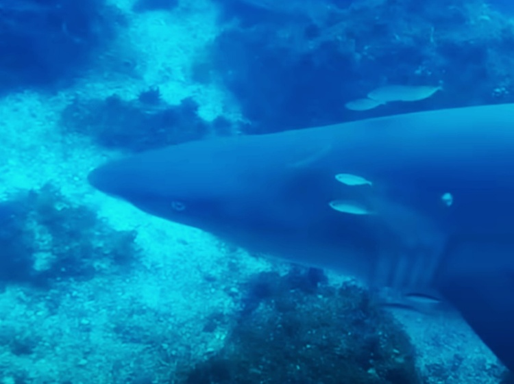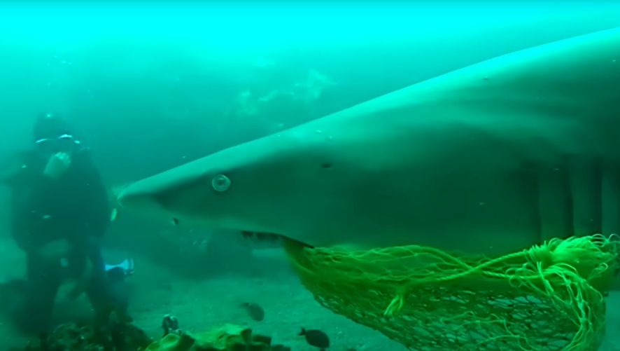 Ekipa nurków w wodach Morza Tasmana sfilmowała przypadek uratowania ponadtrzymetrowego rekina szarego zaplątanego w sieć rybacką. Po długich staraniach udało się im uwolnić rekina z sieci. Rekin odpłynął. Rekiny szare z reguły trzymają się z dala od nurków, ten jednak ku ich zaskoczeniu po chwili powrócił i podpłynął bardzo blisko. Jak relacjonują, przepłynął tuż obok nich, spoglądając im w oczy, jakby dziękując, po czym odpłynął. Całe wydarzenie zostało przez nich sfilmowane. Poniższe zdjęcia obrazują kolejno opisane powyżej etapy.