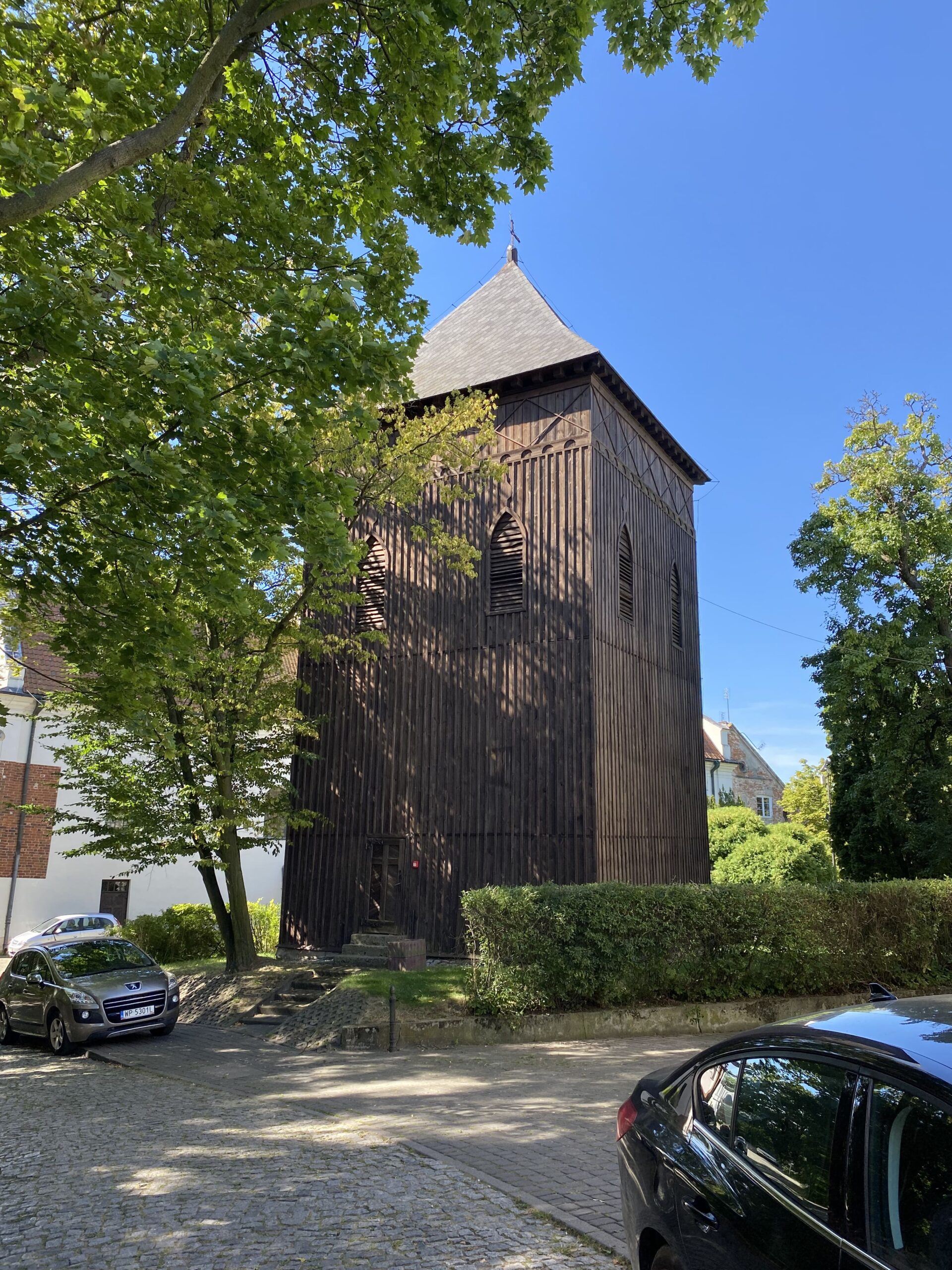 XIX-wieczna dzwonnica przy kościele św. Dominika. Najsłynniejszy i najbardziej okazały drewniany obiekt zabytkowy Płocka.