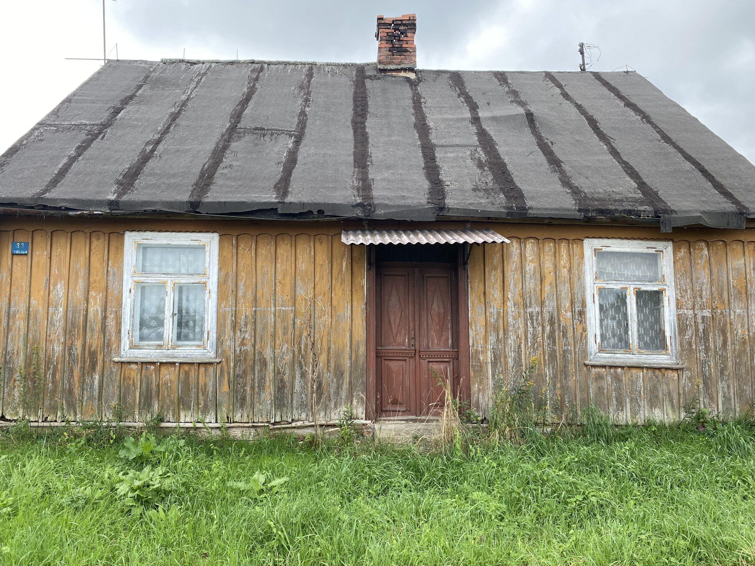 Opuszczony dom mieszkalny w Popłacinie przy drodze do Duninowa. Wyrafinowana, pozorna prostota. Skromny obiekt, ale wart uratowania.