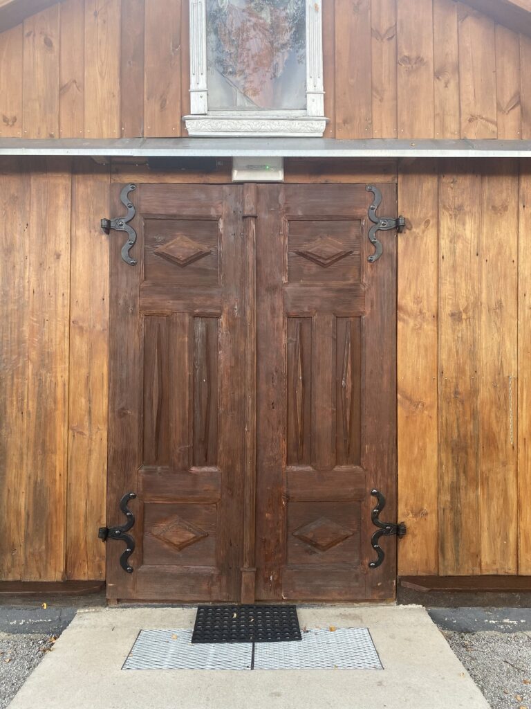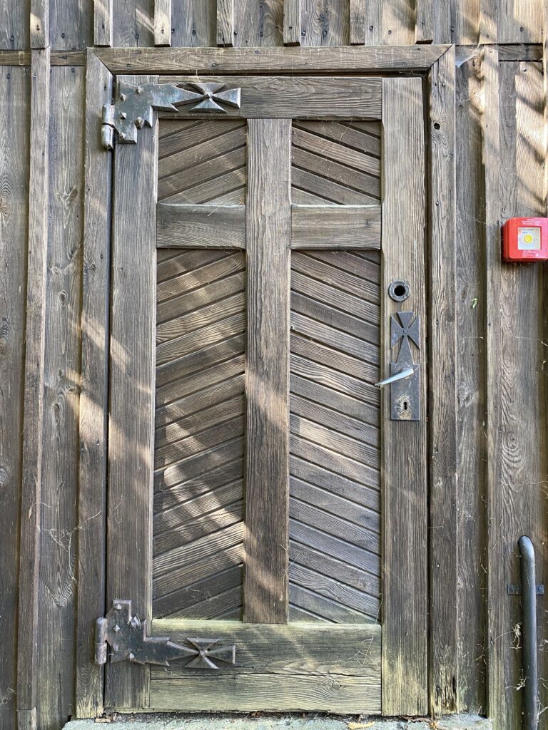 Drzwi wejściowe do XIX-wiecznej dzwonnicy przy kościele św. Dominika w Płocku. Po zbliżeniu się do drzwi na odległość wyciągniętego ramienia czuć jak pachną dwa wieki historii zamkniętej w drewnie.