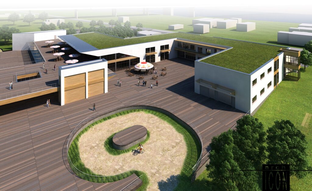Na wizualizacjach: „Stok narciarski – Płock. Projekt koncepcyjny wielobranżowy na nieco wizjonerski pomysł na park sportowo-rekreacyjny, przy i na skarpie wiślanej w Płocku. Obiekt główny – stok narciarski z górką treningową z przenośnikiem taśmowym, wyciągiem orczykowym i krzesełkowym. Obiekty dodatkowe to: trasa rowerowa 4cross, tor saneczkowy, ścieżka rekreacyjno-edukacyjna, hotel, gastronomia, odnowa biologiczna wraz z infrastrukturą. Niestety pomysł inwestora nie doczekał się realizacji” (autor: Archicon).