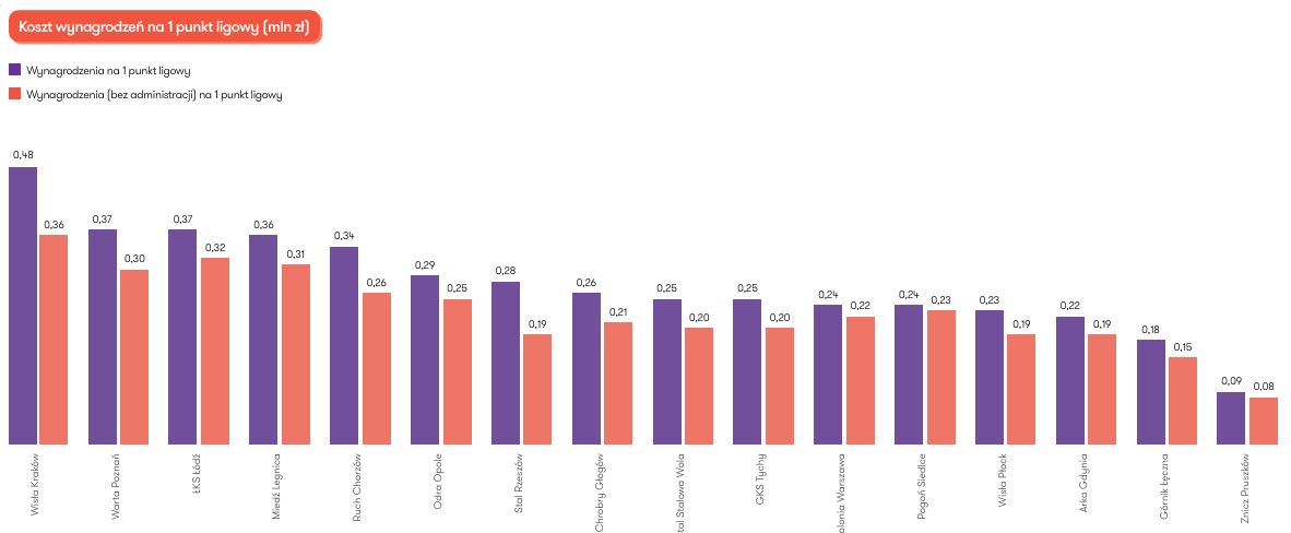 „W Betclic 1 Lidze wydatki na wynagrodzenia są dość silnie skorelowane z miejscem w tabeli na koniec sezonu. Im wyższe środki przeznaczone na wynagrodzenia w klubie, tym lepsza pozycja klubu. Wyjątkiem w sezonie 2024/2025 były Ruch Chorzów i ŁKS Łódź, które mimo wydatków na wynagrodzenia wyższe od średniej ligowej uplasowały się w dolnej części tabeli, zajmując 10. i 11. miejsce”.