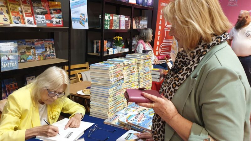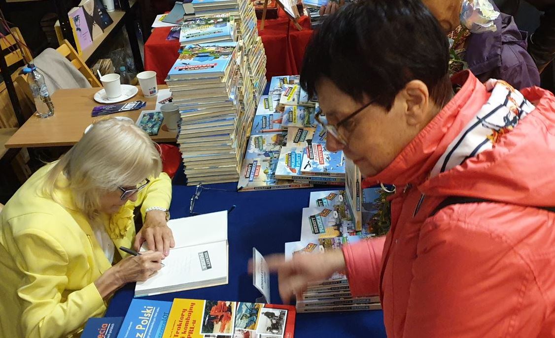 Na zdj. na górze strony i w tekście: Festiwal Książek w „Przedwiośniu”, stoisko Domu Wydawniczego Księży Młyn odwiedziło bardzo dużo płocczan; Romana Kuffel podpisuje „Sekrety Płocka”
