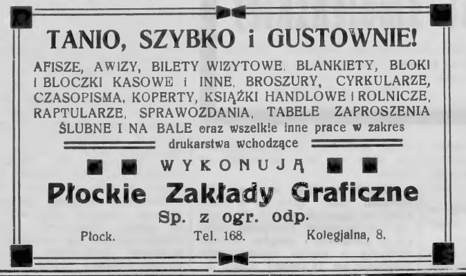 „»Maskarada« na rzecz Straży Ogn. Ochotniczej poruszyła stery towarzyskie naszego miasta. Wiele osób komponuje nader udatne i oryginalne kostiumy, pragnąc się ubiegać o liczne i pamiątkowe nagrody. Jak już donosiliśmy, bilety są do nabycia w obu cukierniach płockich t. j. W-go Skowrońskiego i W-go Szałańskiego w cenie 4 złotych od osoby”.