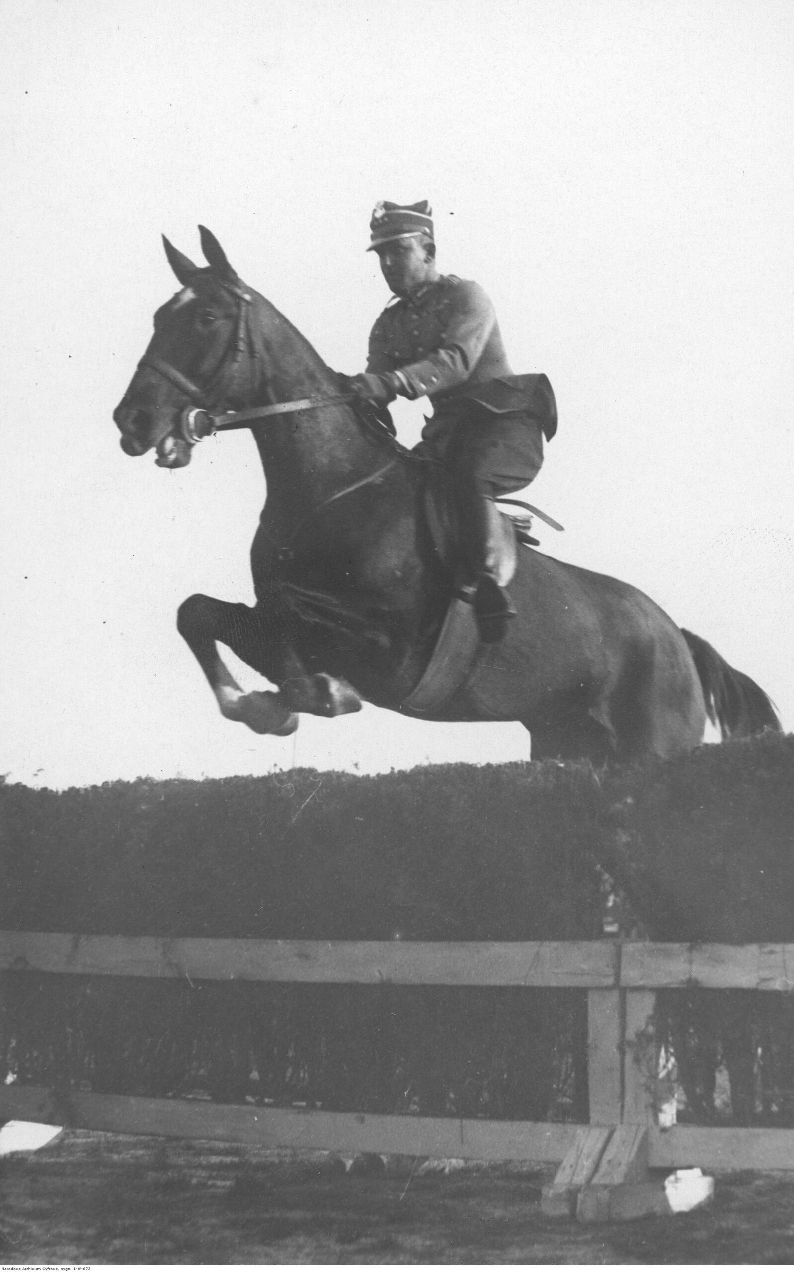 Na zdj.: Żniński pokonuje jedną z przeszkód podczas zawodów hippicznych w Poznaniu, 1930 r., źródło: NAC