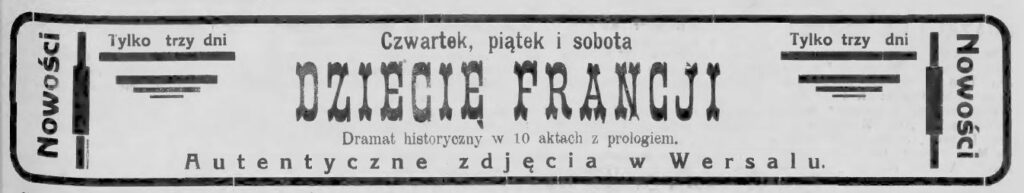 „Wtorek 9 b. m. jest dniem Aktora Polskiego. W dniu tym wszystkie teatry w Rzeczypospolitej Polskiej obchodzą uroczyście swoje »imieniny«. Na tą zatem uroczystość zapraszamy wszystkich życzliwych nam, a przypuszczamy, że takich mamy wielu, a nawet bardzo wielu. Kto zatem nam dobrze życzy, przybędzie we wtorek, aby wraz z nami święcić ten wielki dzień Aktora Polskiego. Przedstawienie »Procesu rozwodowego« poprzedzi przemówienie okolicznościowe a w antraktach odbędą się popisy solowe artystów »naszego« teatru. Ceny miejsc zwykłe”.